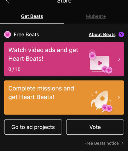2. You can get 3 HEARTBEAT for every ad watched (up to 15 ads a day per account, total 45 HEARTBEATS)