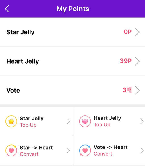 10 HEART Jelly per ad, 50P (5 ads) per hour. Do missions Buy STAR Jelly and convert to HEART Jelly Post photo (20 HEART Jelly per post, max 2 photos a day) Post video (20 HEART Jelly per day, max 1 video a day)HEART Jelly resets at 4AM KST on the 16th of every month