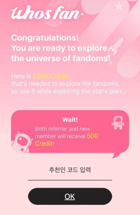 Enter referral names within 3 DAYS of new sign up. [Use SupportRV/SupportRedVelvet/theyerimproject as recommender names to get 500 cash!]Attendance check daily: Increases as you accumulate days!