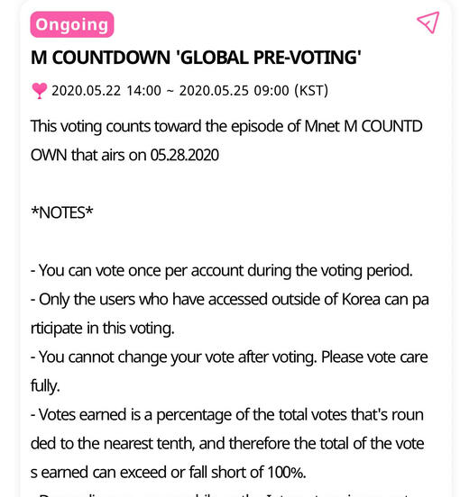 Along with Whosfan voting, GLOBAL voting also includes voting on MWAVE website. Please refer to the MWAVE tutorial to check out how to vote!
